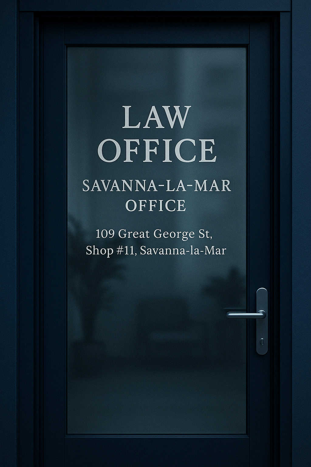Navigating the Jamaican legal landscape can feel overwhelming, especially when you're unsure of the first step. Whether you're on the island and facing a legal matter, be it property concerns, business ventures, family law, or any other issue requiring experienced guidance, you've found the right place. My associates and I understand that starting your legal journey can be daunting. That's why we've created a welcoming and supportive environment where you can explore your options without pressure or obligation. Let us be the compass that guides you through the complexities of the law, providing clarity and direction from the very beginning.
